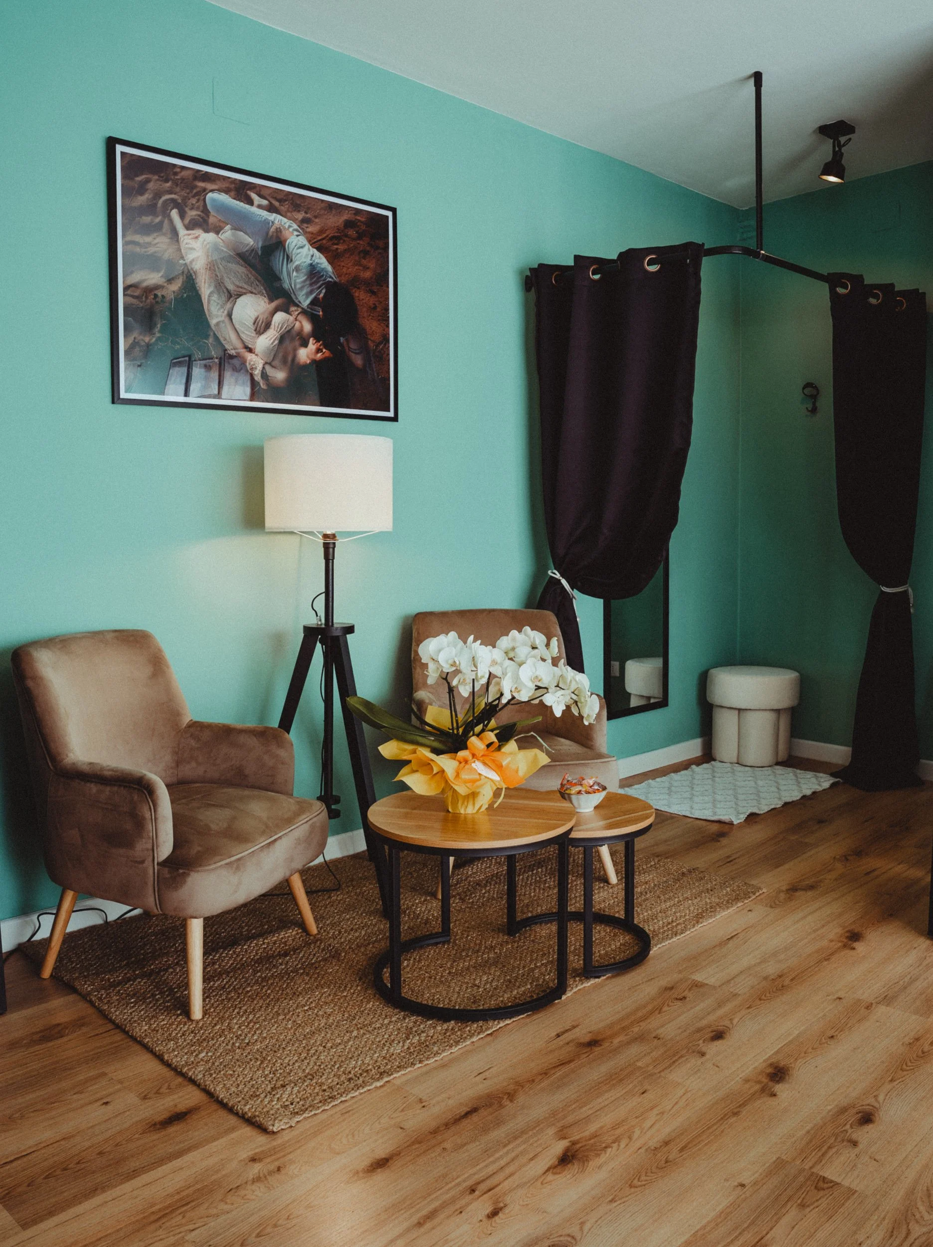 Prima ancora di iniziare il servizio fotografico, mi piace che ogni persona si senta accolta e a proprio agio. Per questo nello studio ho creato una sala accoglienza pensata come uno spazio caldo e rilassato, dove poter parlare con calma della sessione fotografica e conoscersi meglio.